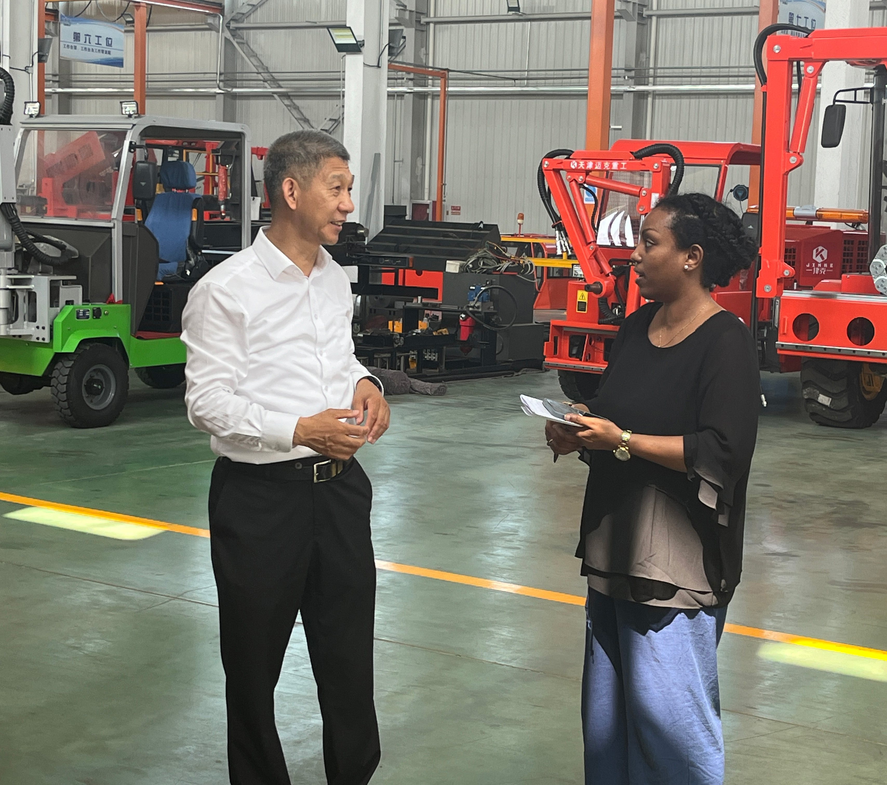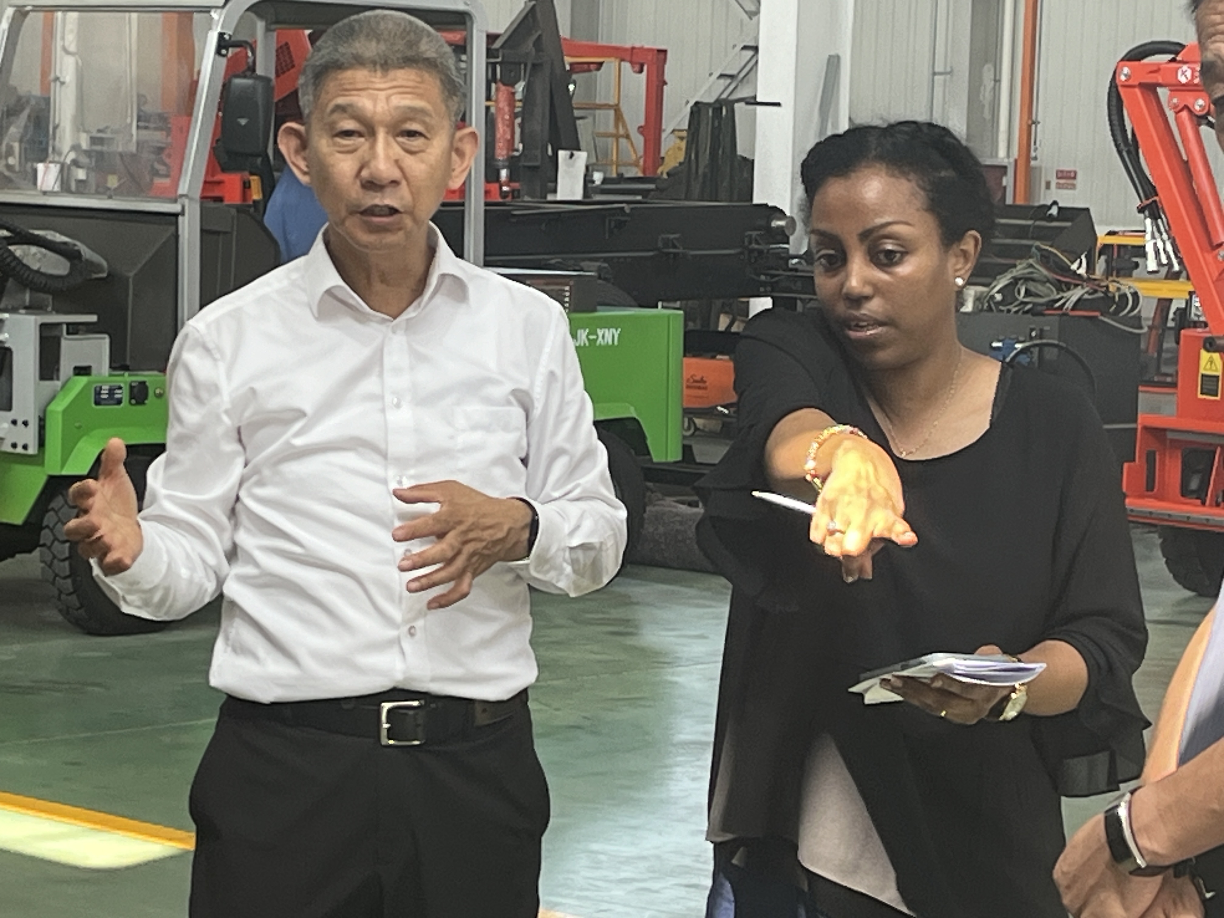 考察團由我司劉總親自接待,在部門負責人和工程師的引領下,客人們參觀了我們的總裝車間,參觀了我司研發生產的各種機型。通過總裝車間中產品詳盡的介紹,埃塞俄比亞客戶對我司的技術創新能力及市場適應性有了更為直觀的認識。